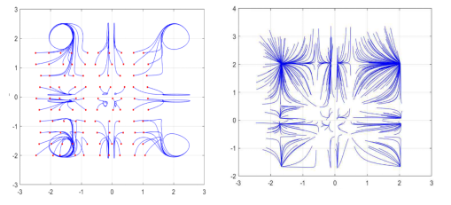 貴大新聞網(wǎng)訊(數(shù)學(xué)與統(tǒng)計學(xué)院)近日,國家天元數(shù)學(xué)西南中心貴州基地/貴州省數(shù)據(jù)驅(qū)動建模學(xué)習與優(yōu)化創(chuàng)新人才團隊、貴州大學(xué)數(shù)學(xué)與統(tǒng)計學(xué)院王錦榮教授團隊教師歐世勤以第一作者在計算機領(lǐng)域頂級期刊 IEEE Transactions on Fuzzy Systems 等期刊發(fā)表神經(jīng)網(wǎng)絡(luò)系列學(xué)術(shù)論文,為相關(guān)領(lǐng)域的研究提供了新的理論和方法。針對模糊神經(jīng)網(wǎng)絡(luò),給出了狀態(tài)依賴切換機制構(gòu)建了狀態(tài)依賴切換模糊神經(jīng)網(wǎng)絡(luò)模型,探討了系統(tǒng)參數(shù)在狀態(tài)依賴切換下多穩(wěn)定性和固定時間多穩(wěn)定性問題,旨在為神經(jīng)網(wǎng)絡(luò)在聯(lián)想記憶中的應(yīng)用提供理論依據(jù)。研究結(jié)果表明狀態(tài)依賴切換機制會導(dǎo)致系統(tǒng)的平衡態(tài)增加,使之在聯(lián)想記憶應(yīng)用中比傳統(tǒng)未切換的神經(jīng)網(wǎng)絡(luò)模型有更大的儲存容量。進一步考慮系統(tǒng)參數(shù)具有概周期性,得到了具有高斯激活函數(shù)的元切換模糊神經(jīng)網(wǎng)絡(luò)具有個穩(wěn)定的概周期解,下圖分別給出了具有高斯激活函數(shù)的2元切換神經(jīng)網(wǎng)絡(luò)在時變概周期參數(shù)與非時變參數(shù)下的相圖。此外,在系統(tǒng)實現(xiàn)多穩(wěn)態(tài)的基礎(chǔ)上,提出了多控制器組合控制策略以實現(xiàn)多個平衡態(tài)的固定時間收斂,建立了固定時間多概周期性、多周期性和多穩(wěn)定性的判定準則,相關(guān)結(jié)果已投稿且被(IEEE Transact